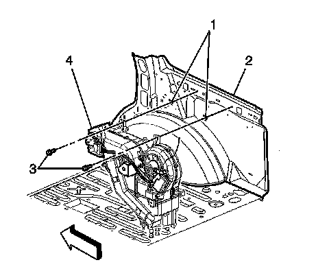 4. Remove the right rear wheelhouse liner panel. Refer to Rear Wheelhouse Panel Liner Replacement (Service and Repair).