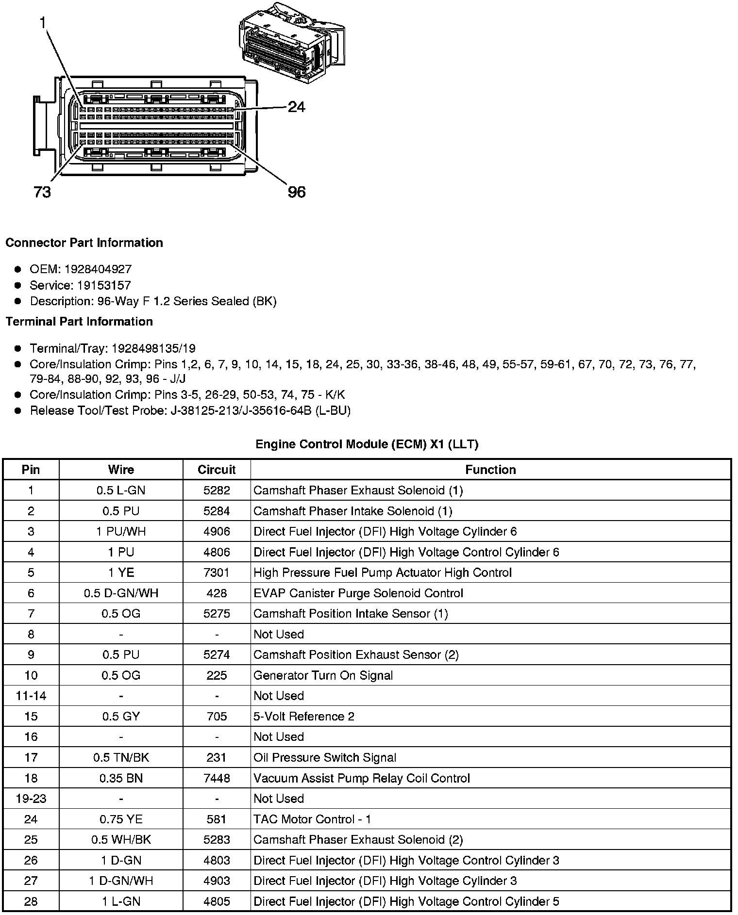 Component Connector End ViewsEngine Control Module (ECM) X1 (LLT)Engine Control Module (ECM) X2 (LLT)
