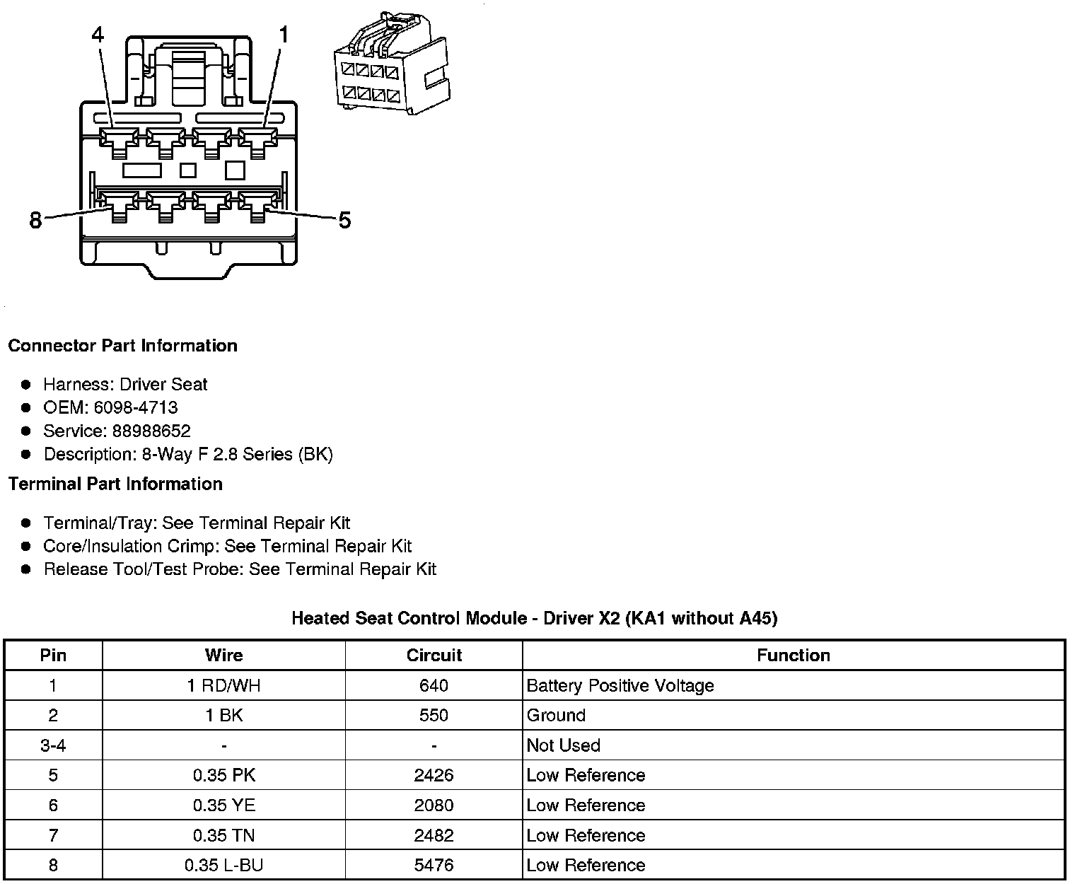 Heated Seat Control Module - Driver X4 (KA1 without A45)