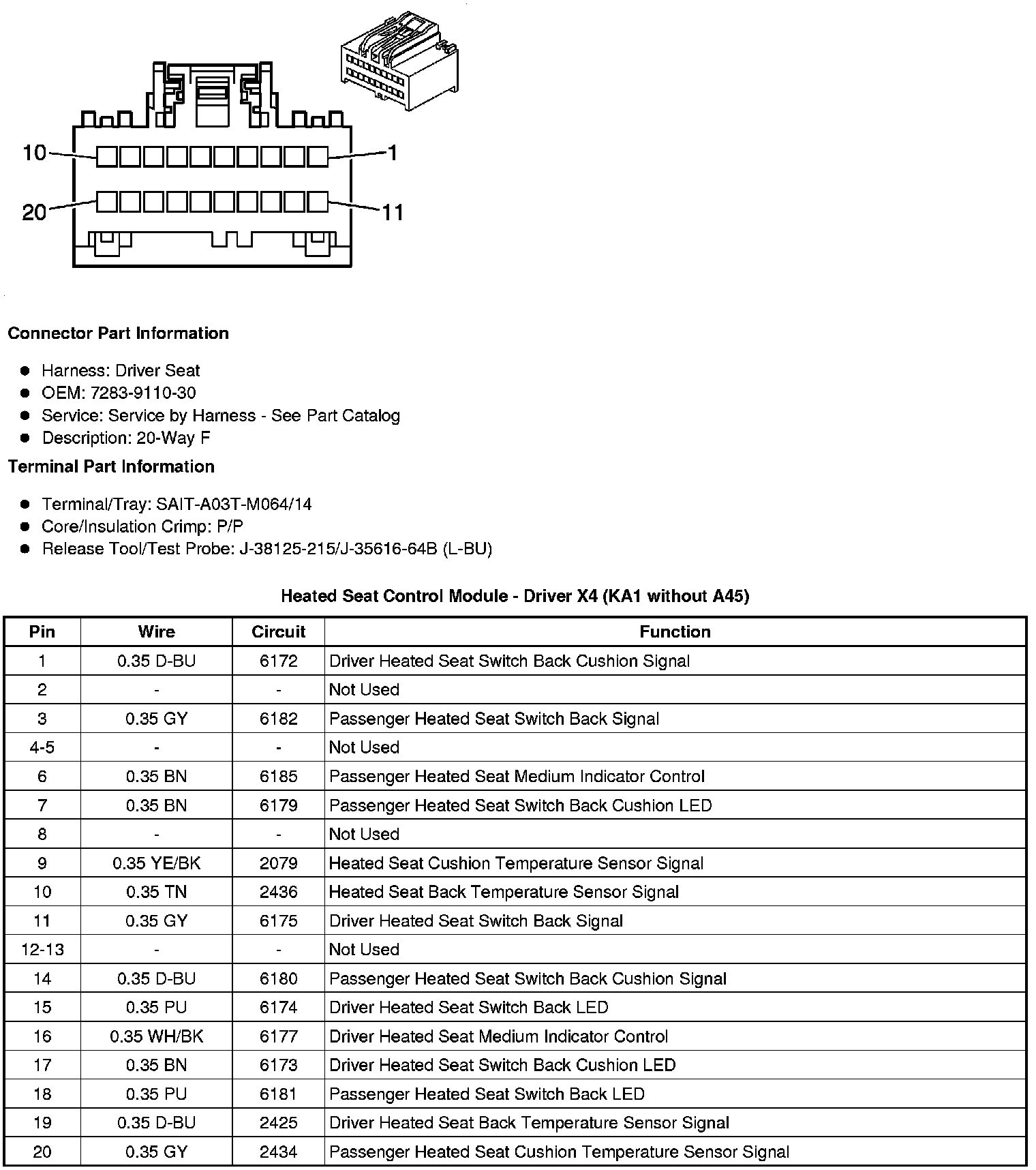Heated Seat Control Module - Driver X1 (KA1 without A45)
