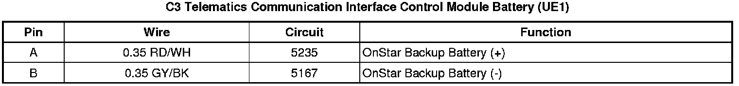 Telematics Communication Interface Control Module Battery (UE1)