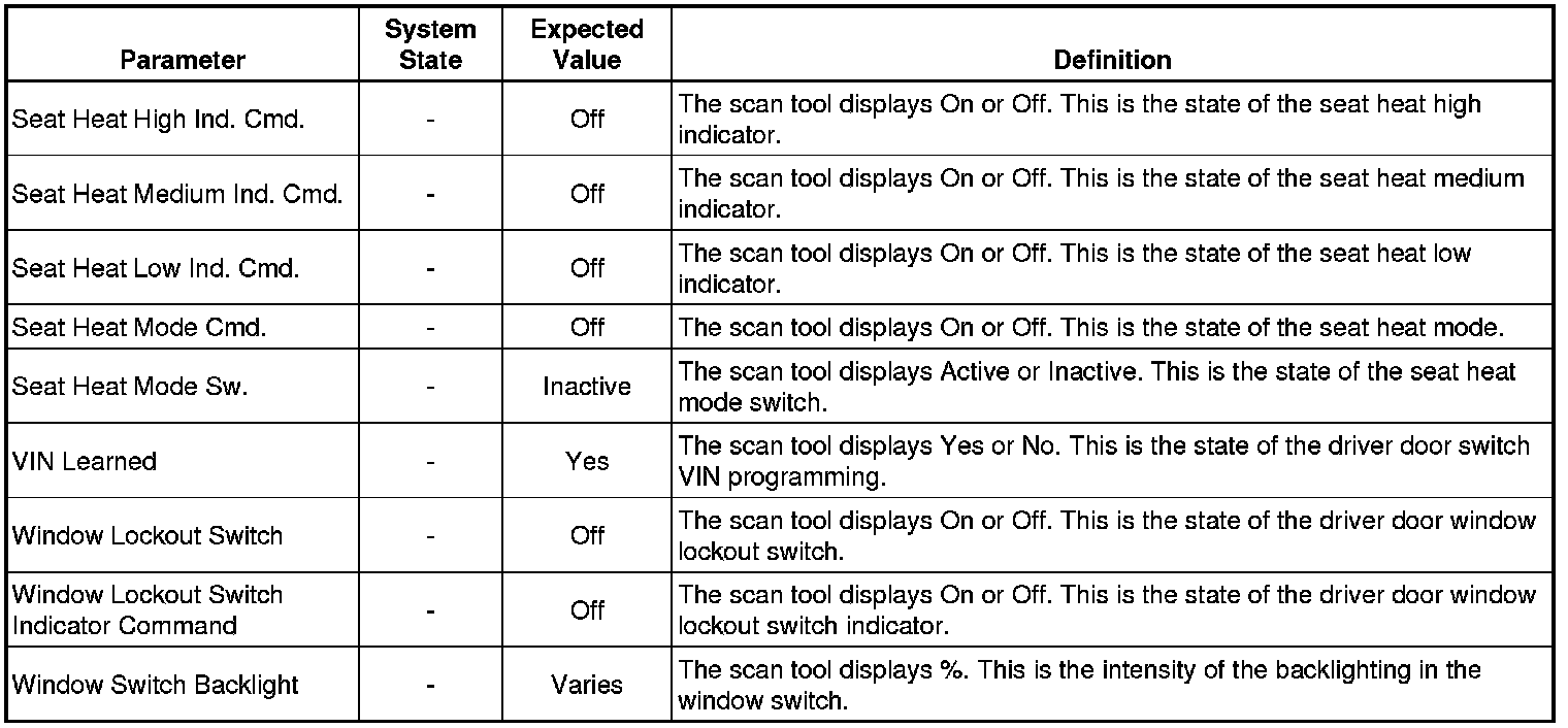 Door Lock Control Module Scan Tool Information (Driver Door Switch)
