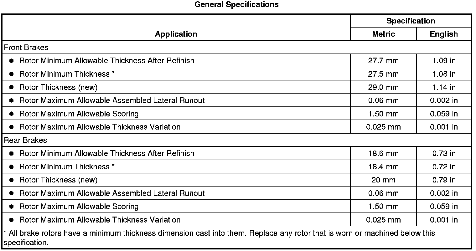 Disc Brake Component Specifications