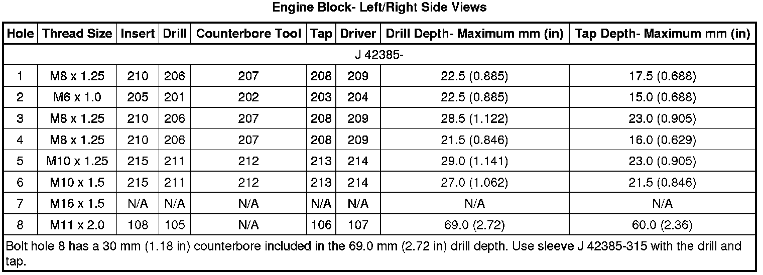 Thread Repair Specifications (6.2L LS3/7.0L)