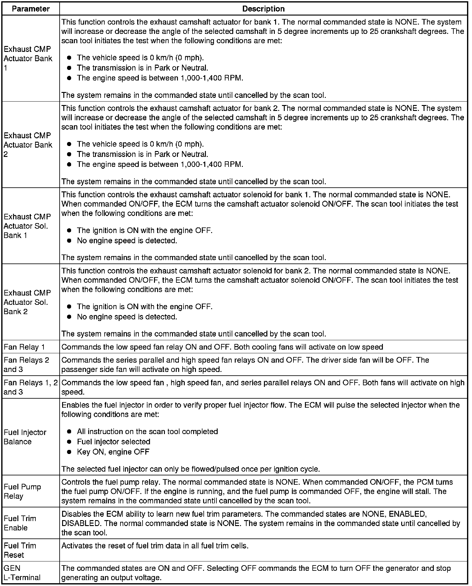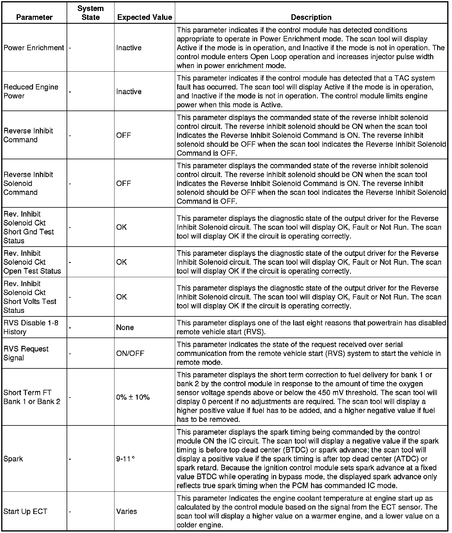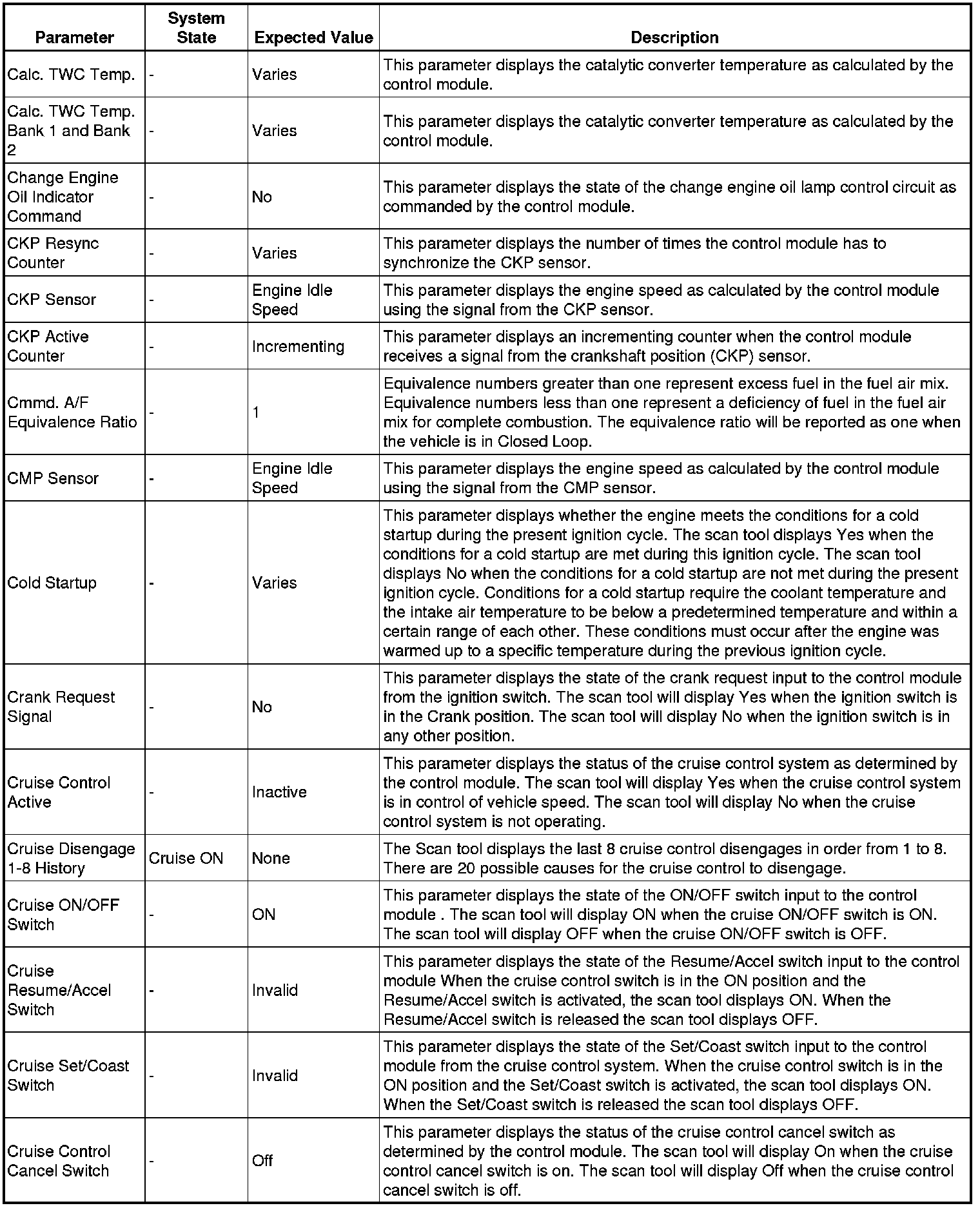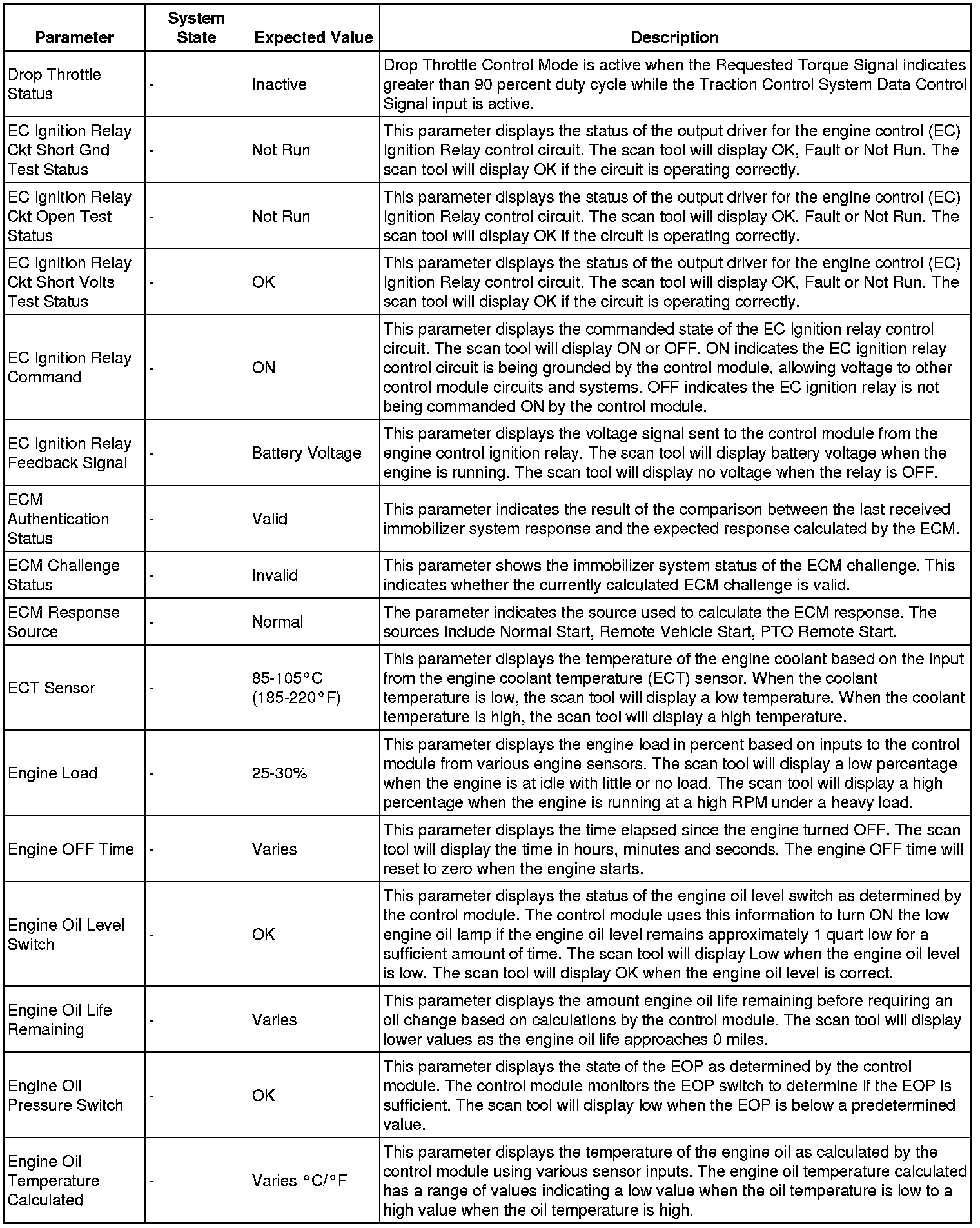 The Engine Control Module Scan Tool Data List contains all engine-related parameters that are available on the scan tool. The list is arranged in alphabetical order. A given parameter may appear in any one of the data lists, and in some cases may appear more than once, or in more than one data list in order to group certain related parameters together.
