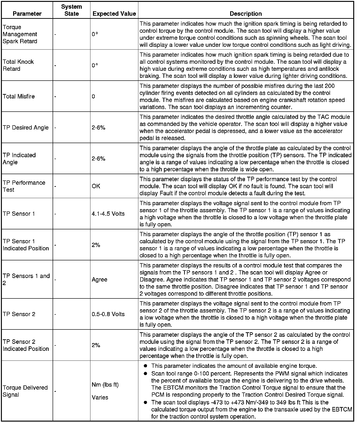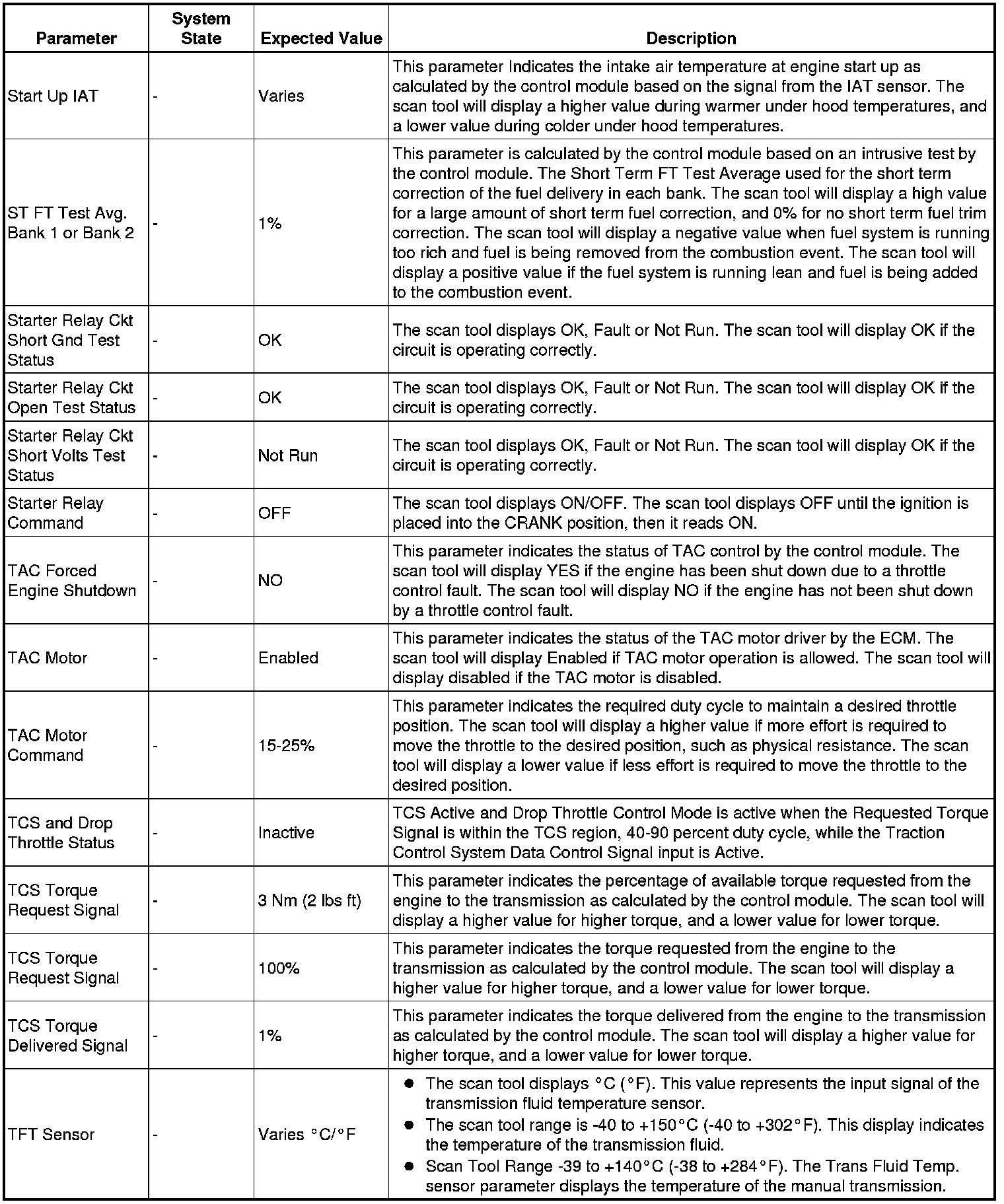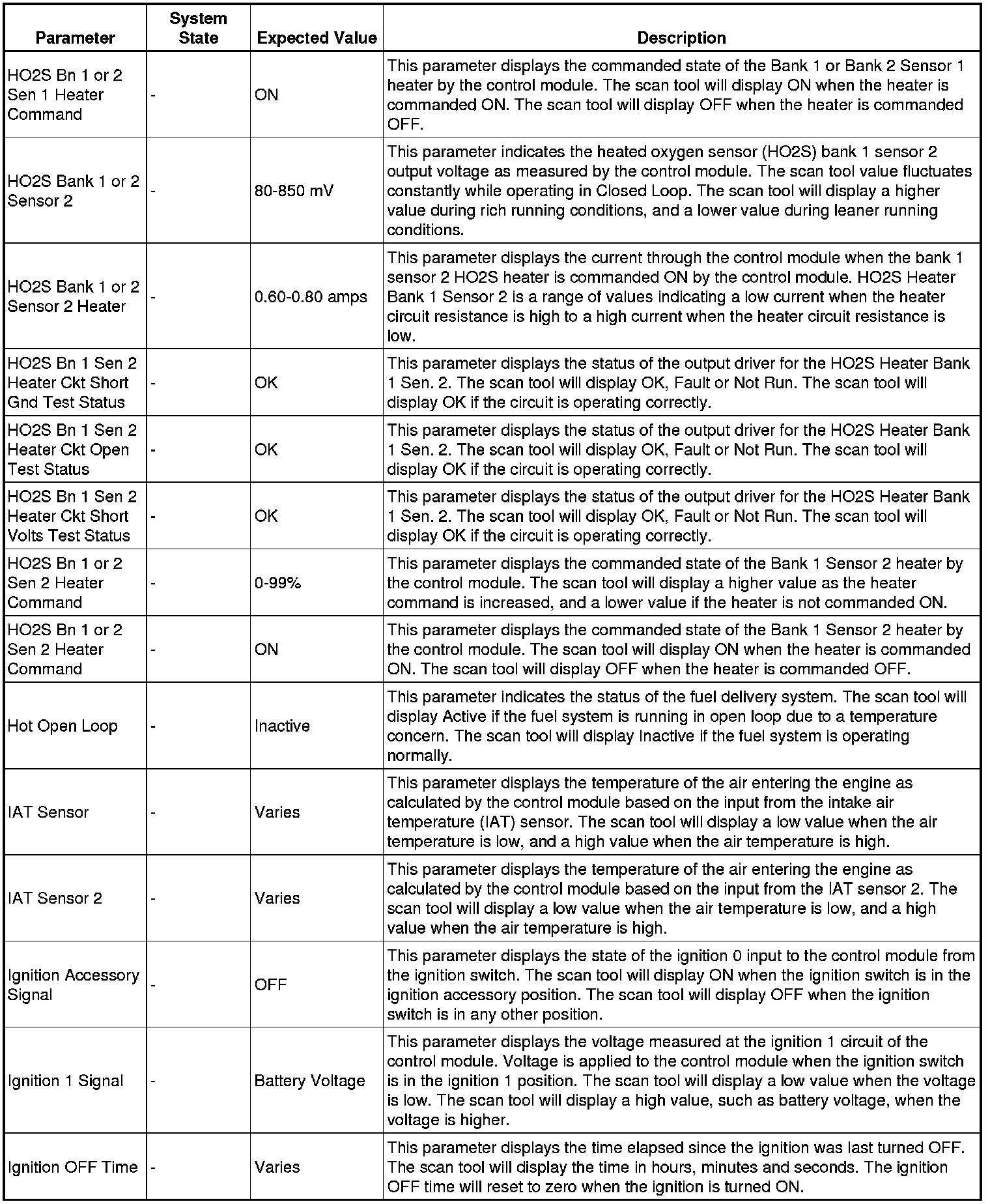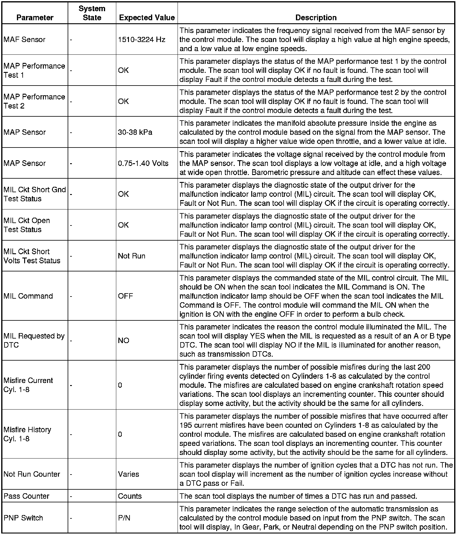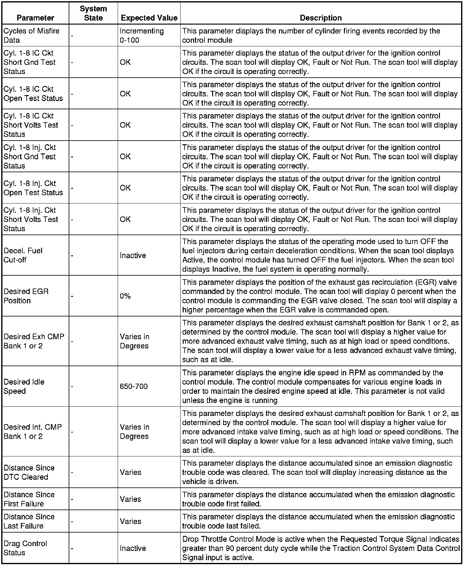 The scan tool values from a properly running engine may be used for comparison with the engine you are diagnosing. The engine scan tool data list represents values that would be seen on a normally running engine.