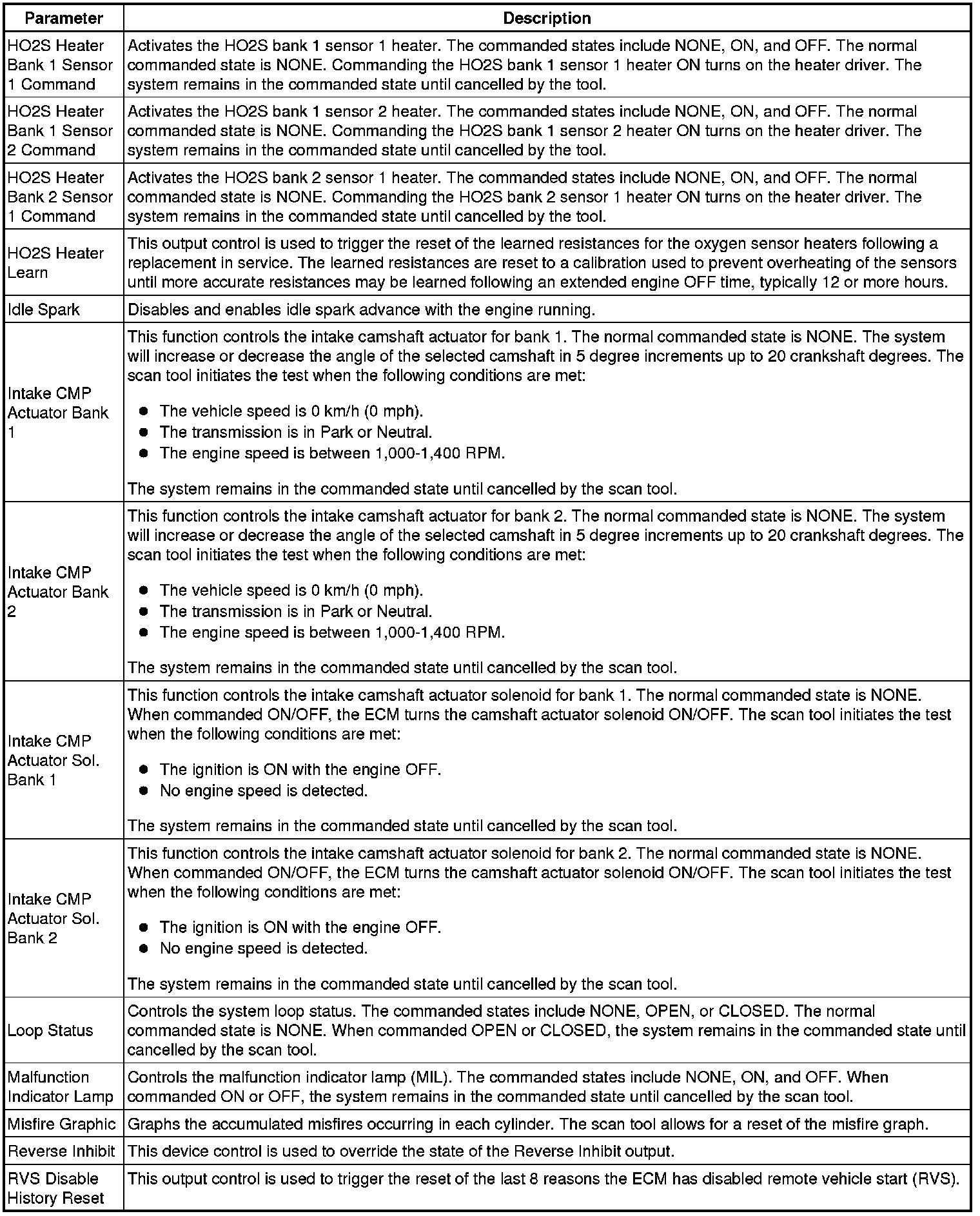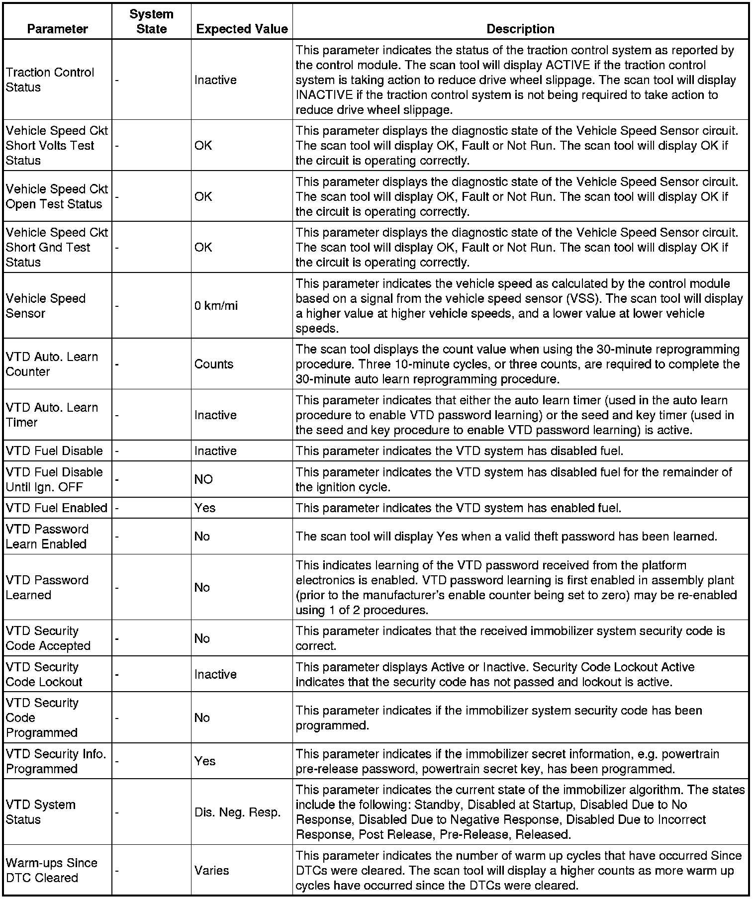 Only the parameters listed below are referenced in this service manual for use in diagnosis.