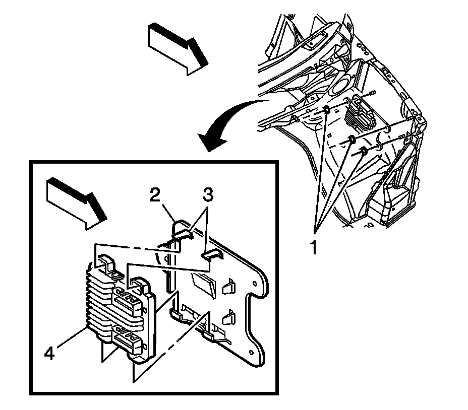 2. Ensure that the ECM bracket tabs (3) fully engage the ECM.