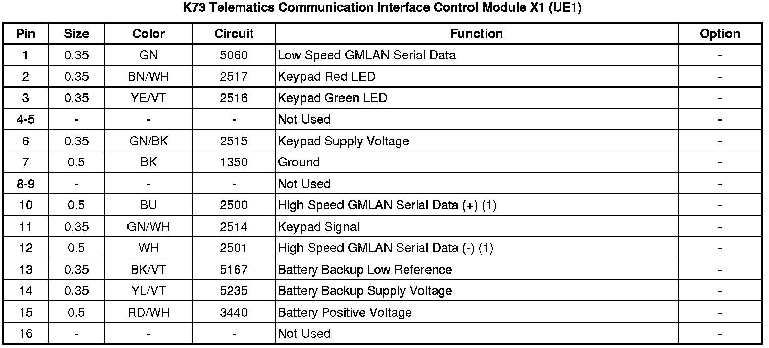 K73 Telematics Communication Interface Control Module X1 (UE1)