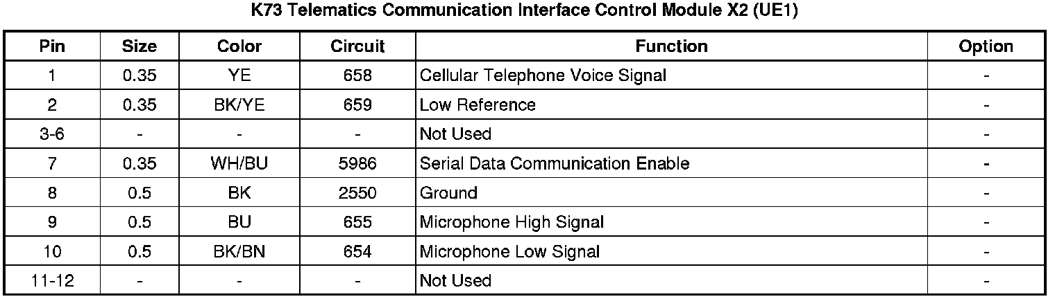 K73 Telematics Communication Interface Control Module X2 (UE1)