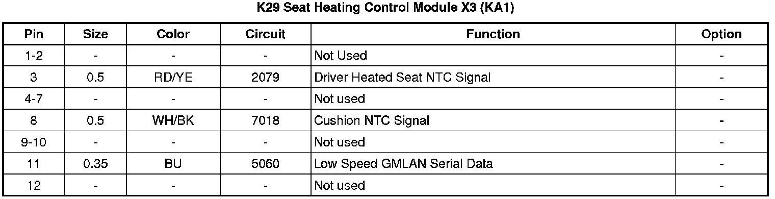 Seat Heating Control Module X3 (KA1)