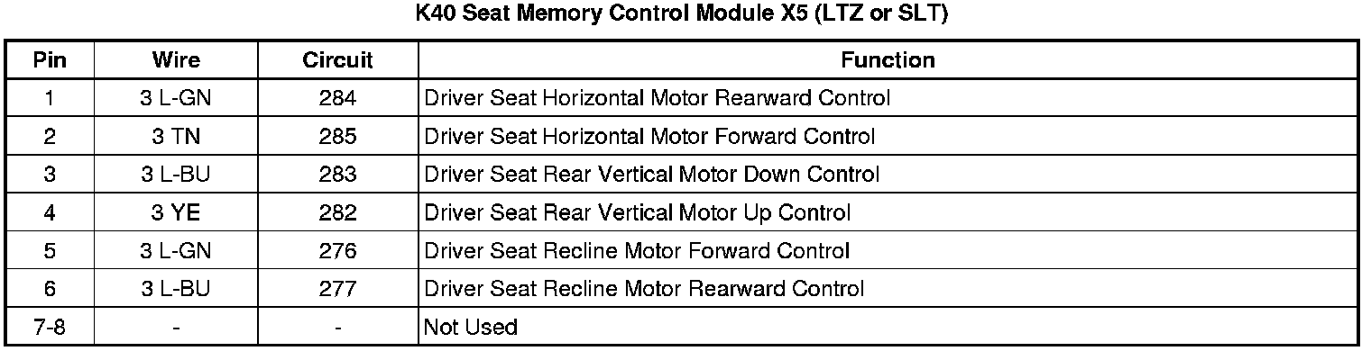K40 Seat Memory Control Module X5 (LTZ or SLT)