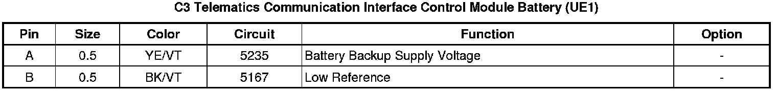 Telematics Communication Interface Control Module Battery (UE1)
