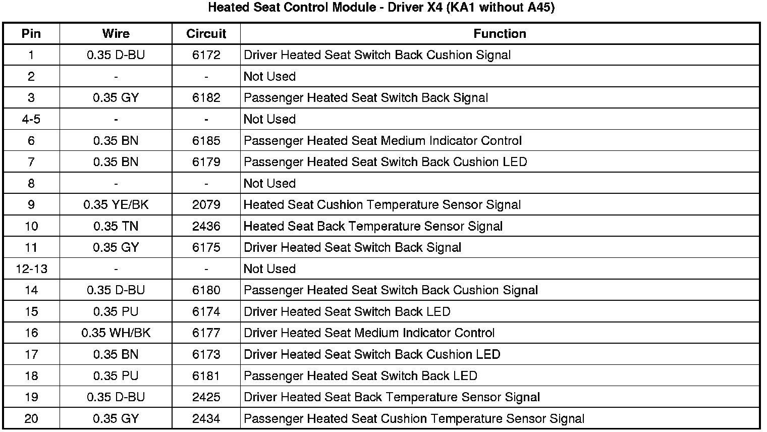 Heated Seat Control Module - Driver X4 (KA1 without A45)