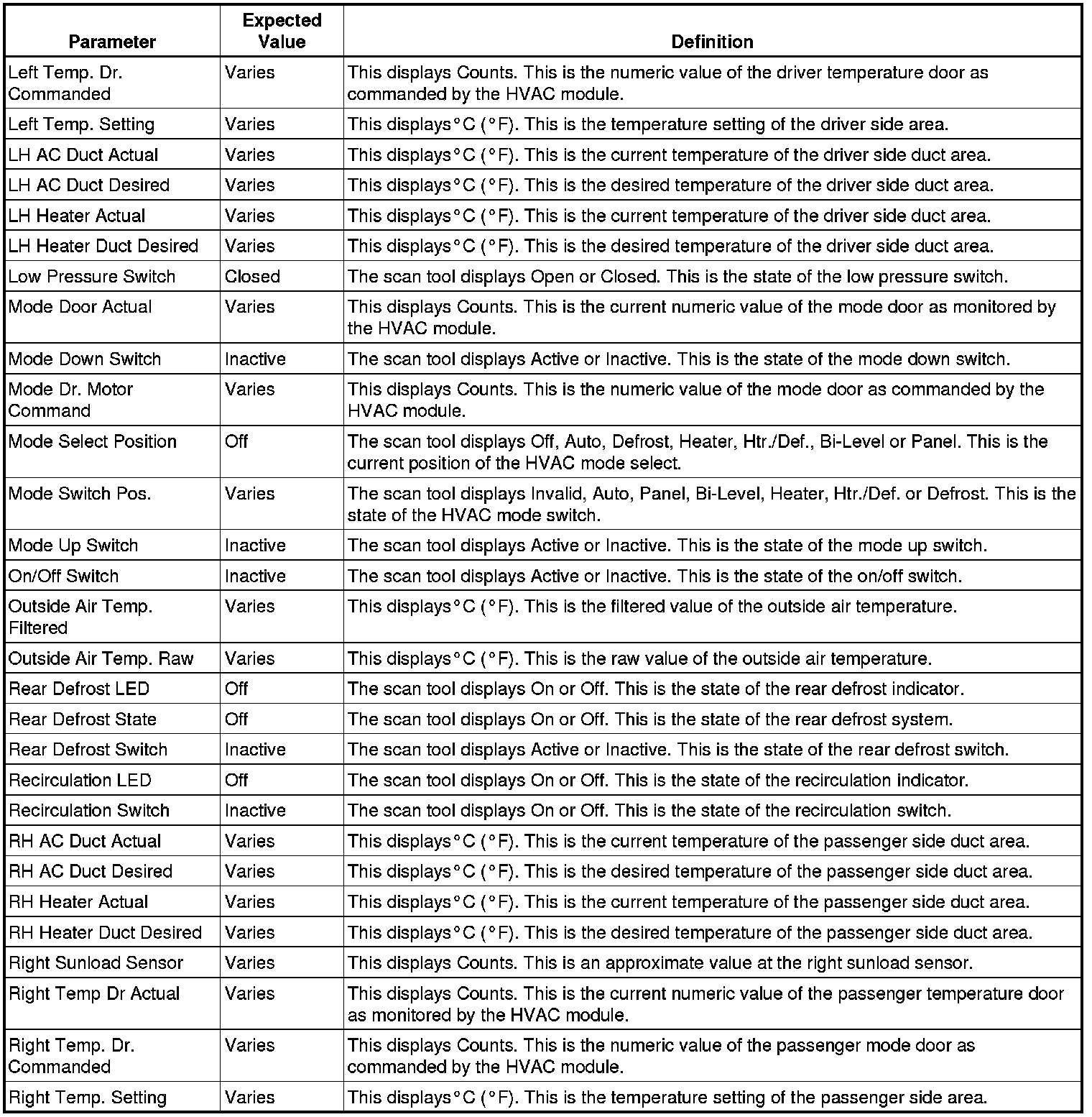 Heating, Ventilation and Air Conditioning Control Module Scan Tool Information