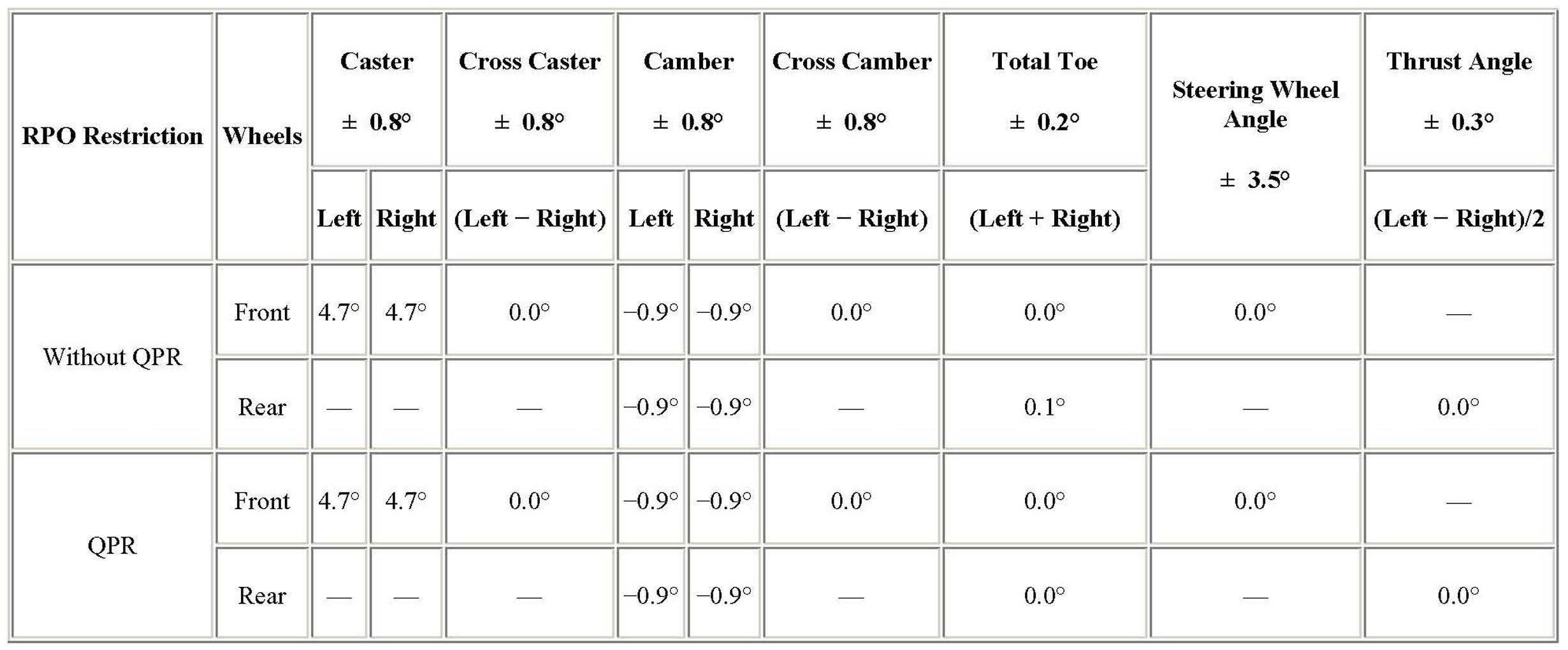 WHEEL ALIGNMENT SPECIFICATIONS