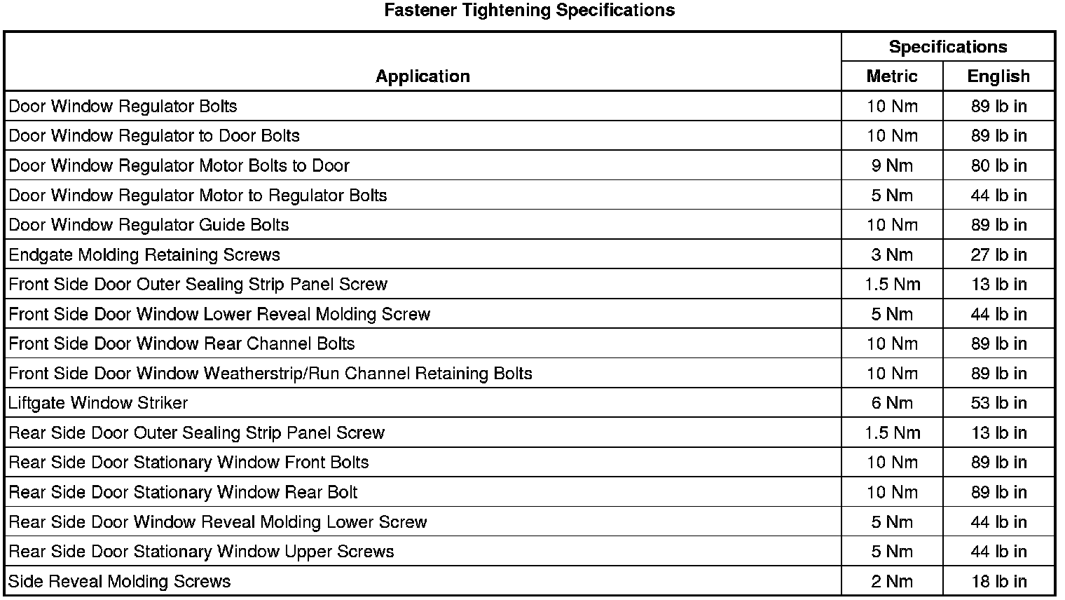 Fastener Tightening Specifications