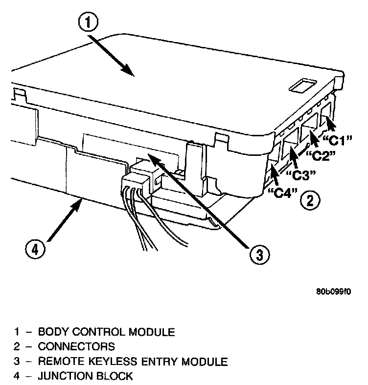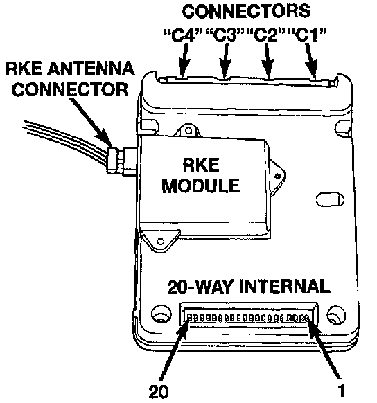 When trouble shooting problems with the Remote Keyless Entry System, always verify that the power door lock/unlock switches are functional. If the doors do not lock/unlock with the power switches, the following modules should be analyzed: