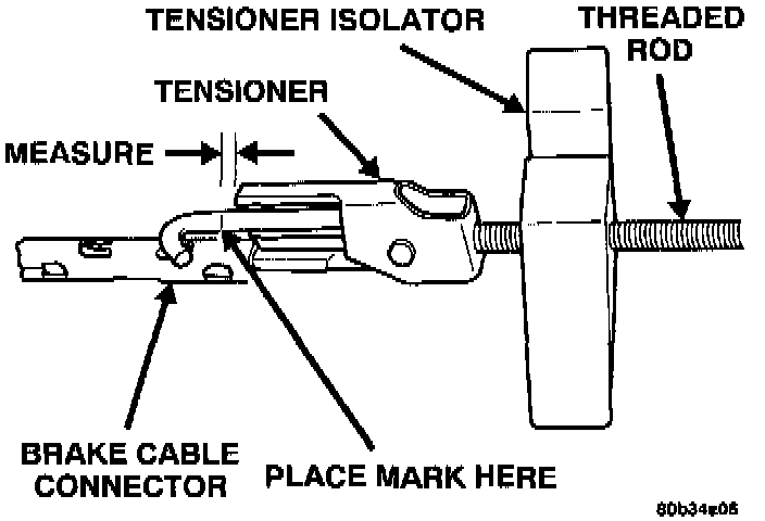 8. Tighten adjusting nut at equalizer until mark on tensioner rod moves into alignment with edge of tensioner bracket.