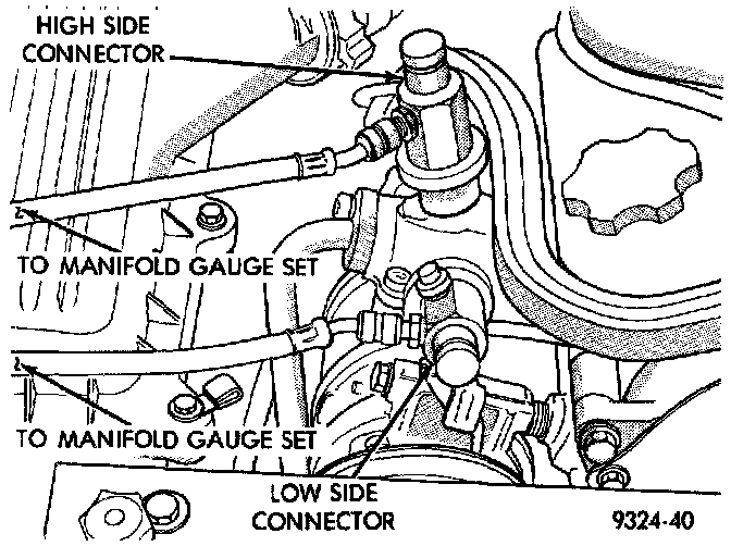 The procedure below should be used to check and/or fill the refrigerant charge in the air conditioning system.