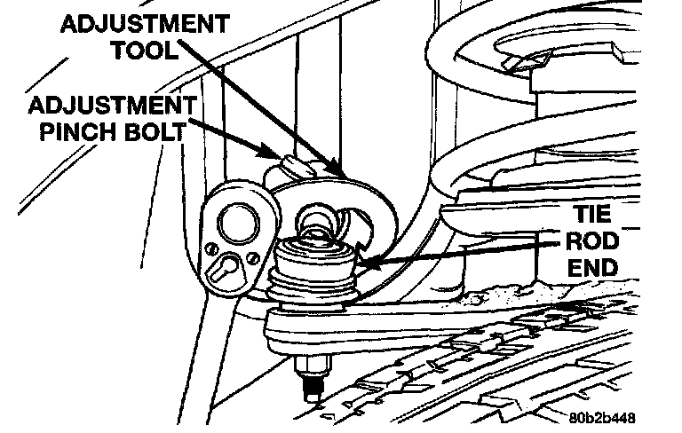2. Loosen the tie rod adjustment pinch bolt. Rotate the adjustment sleeve to align toe to specifications.