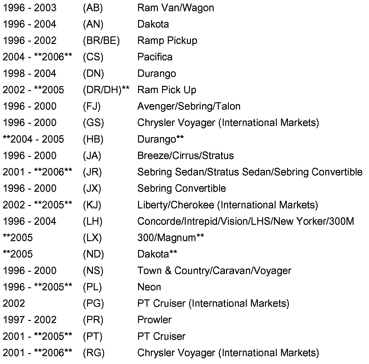 CO-PILOT SUPPORT IS NOT AVAILABLE FOR THE 2002 LH AND 2002.5 DN NGC TRANS. DRBIII(R) DATA RECORDER MUST BE USED FOR THESE VEHICLES.