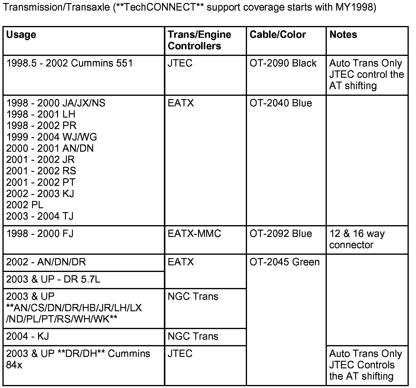 ^ Electronic Automatic Transmission Modules (EATX) - all versions. Data recorder support for these modules start with the 1998 model year.