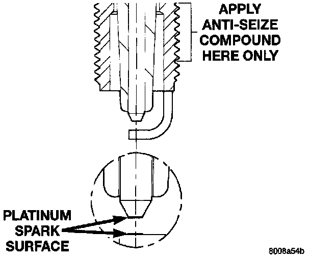 A thin platinum pad is welded to both or center electrode end(s) as shown. Extreme care must be used to prevent spark plug cross threading, mis-gaping and ceramic insulator damage during plug removal and installation.