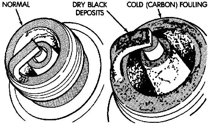 Cold fouling is sometimes referred to as carbon fouling because the deposits that cause cold fouling are basically carbon. A dry, black deposit on one or two plugs in a set may be caused by sticking valves or misfire conditions. Cold (carbon) fouling of the entire set may be caused by a clogged air cleaner.
