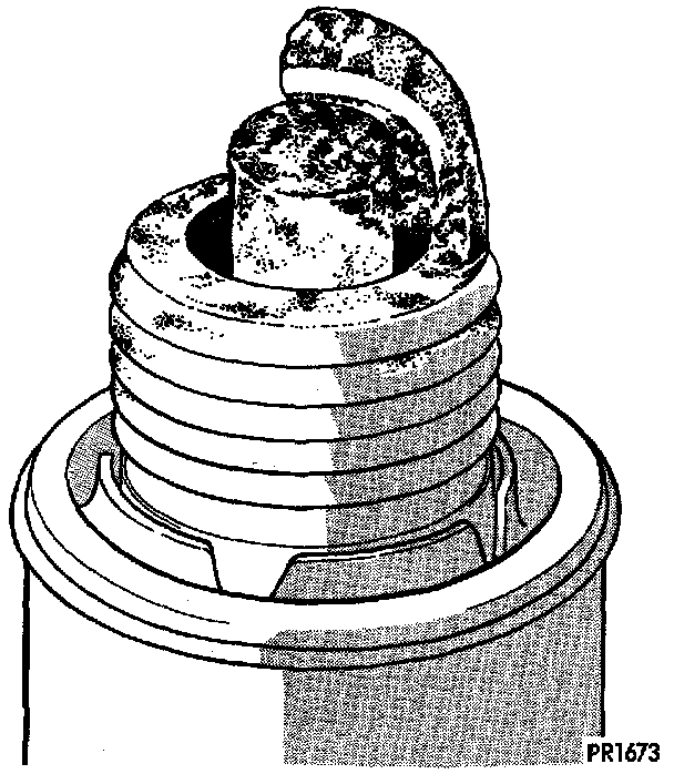Remove the spark plugs and examine them for burned electrodes and fouled, cracked or broken porcelain insulators. Keep plugs arranged in the order in which they were removed from the engine. An isolated plug displaying an abnormal condition indicates that a problem exists in the corresponding cylinder. Replace spark plugs at the intervals recommended.