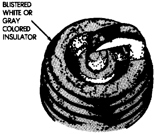 Overheating is indicated by a white or gray center electrode insulator that also appears blistered. The increase in electrode gap will be considerably in excess of 0.001 in per 1000 miles of operation. This suggests that a plug with a cooler heat range rating should be used. Over advanced ignition timing, detonation and cooling system malfunctions also can cause spark plug overheating.