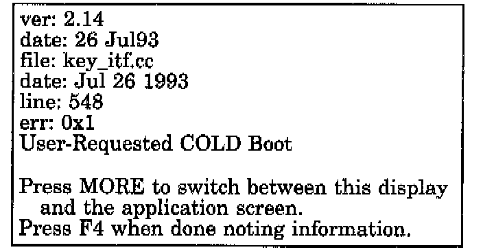 If the DRB should display any other error message, record the entire display and call the MDS Hotline. This is a sample of such an error message display: