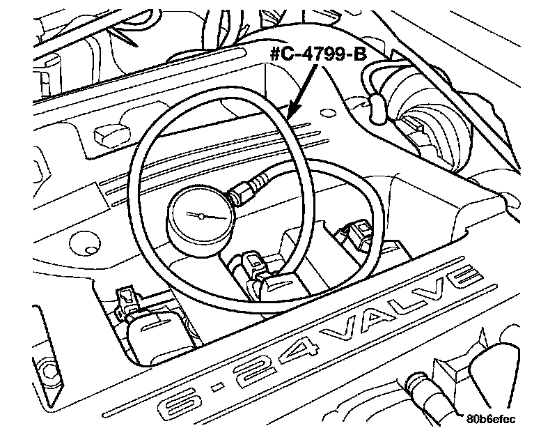 2. Connect Fuel Pressure Gauge C-4799B to test port.