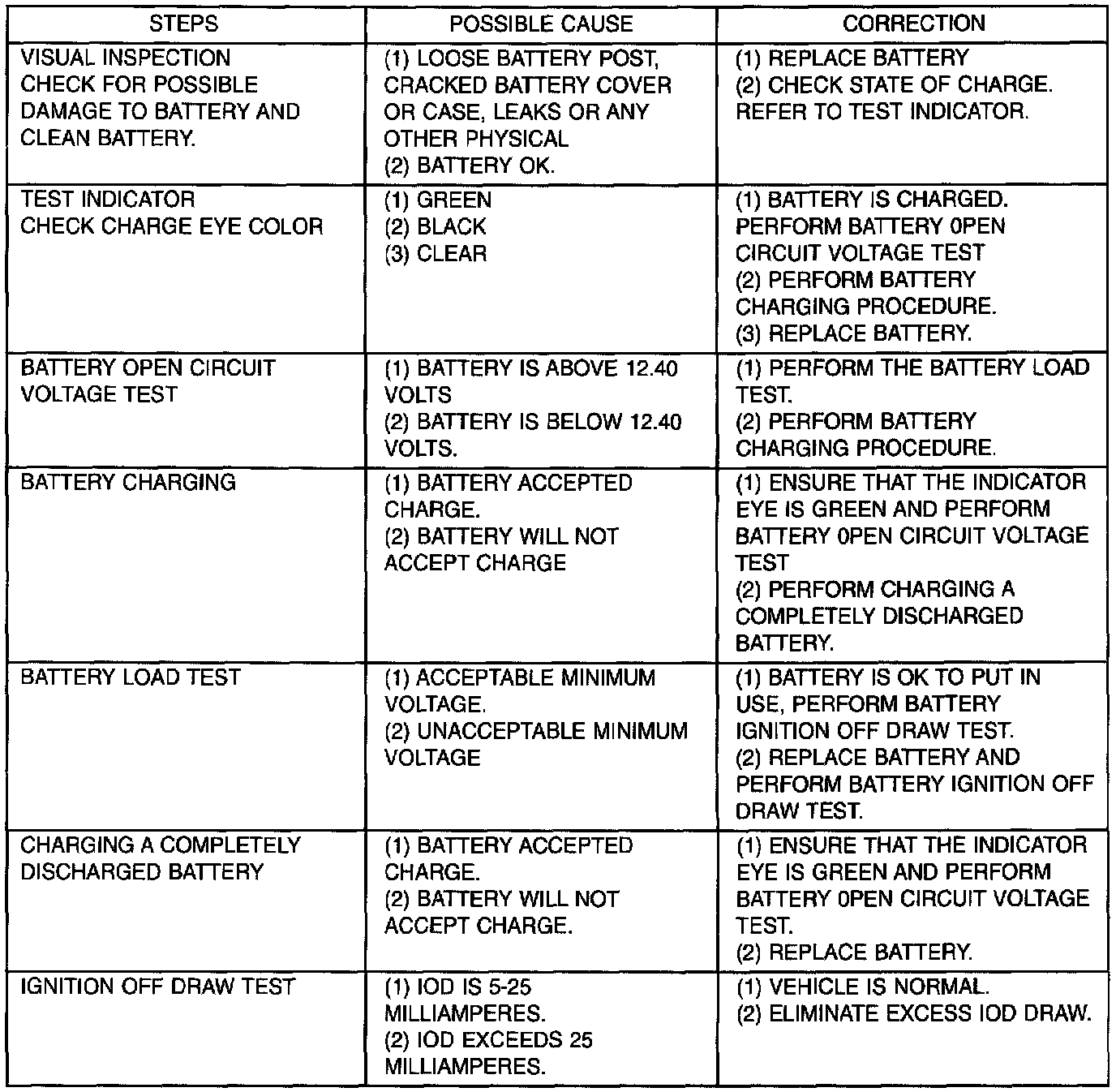 Battery Diagnosis And Testing Chart: