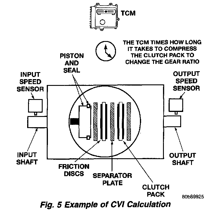 By comparing the two inputs, the TCM can determine transaxle gear position. This is important to the CVI calculation because the TCM determines CVIs by monitoring how long it takes for a gear change to occur (Fig. 5).