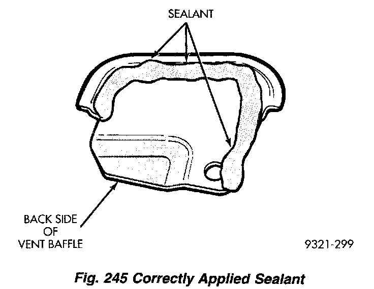 When reinstalling main sump baffle apply MOPAR Silicone Sealant as shown in (Fig. 245).