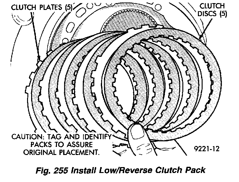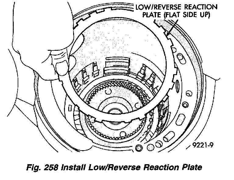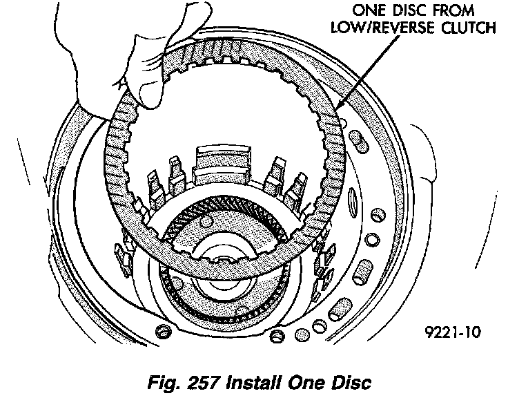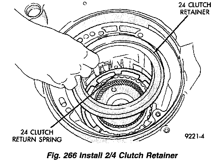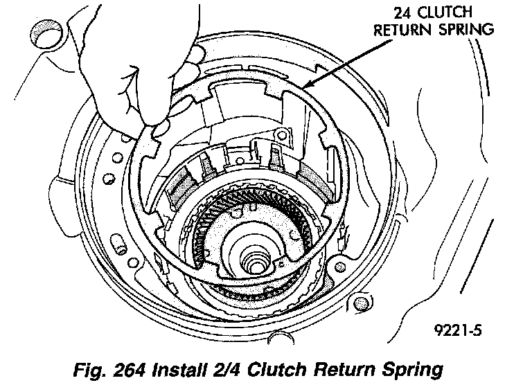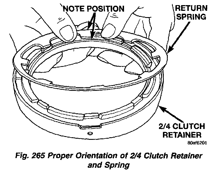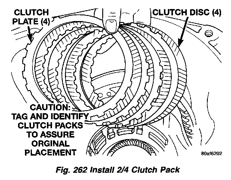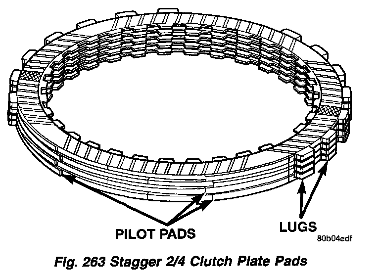 NOTE: When installing the 2-4 clutch plates and discs, the orientation should be alternated so the pilot pads of adjacent plates do not align, refer to (Fig. 263).