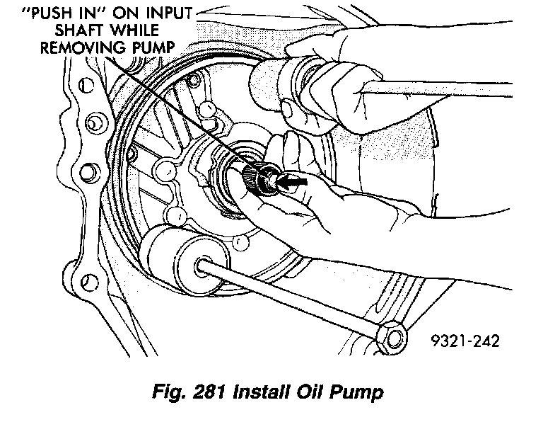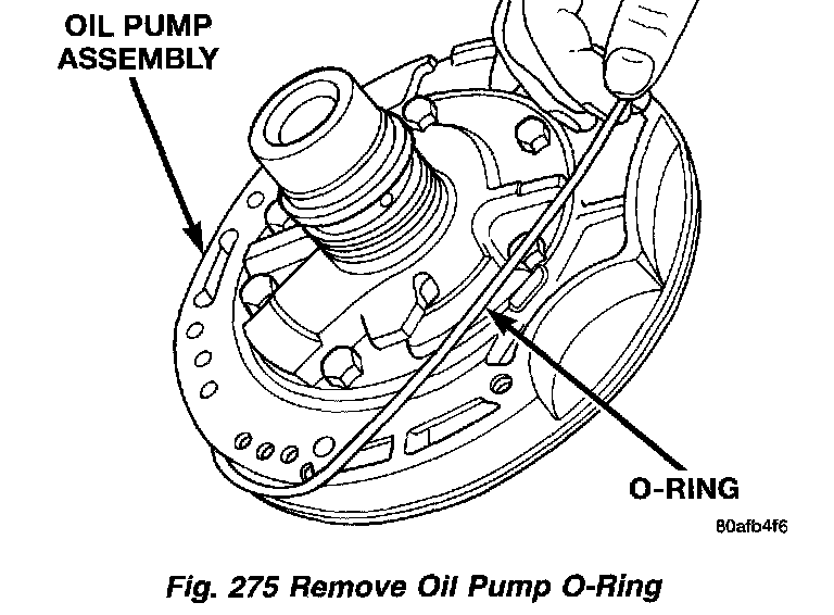 Remove the oil pump O-ring (Fig. 275). You will be able to install and remove the oil pump and gasket very easily to select the proper No. 4 thrust plate.