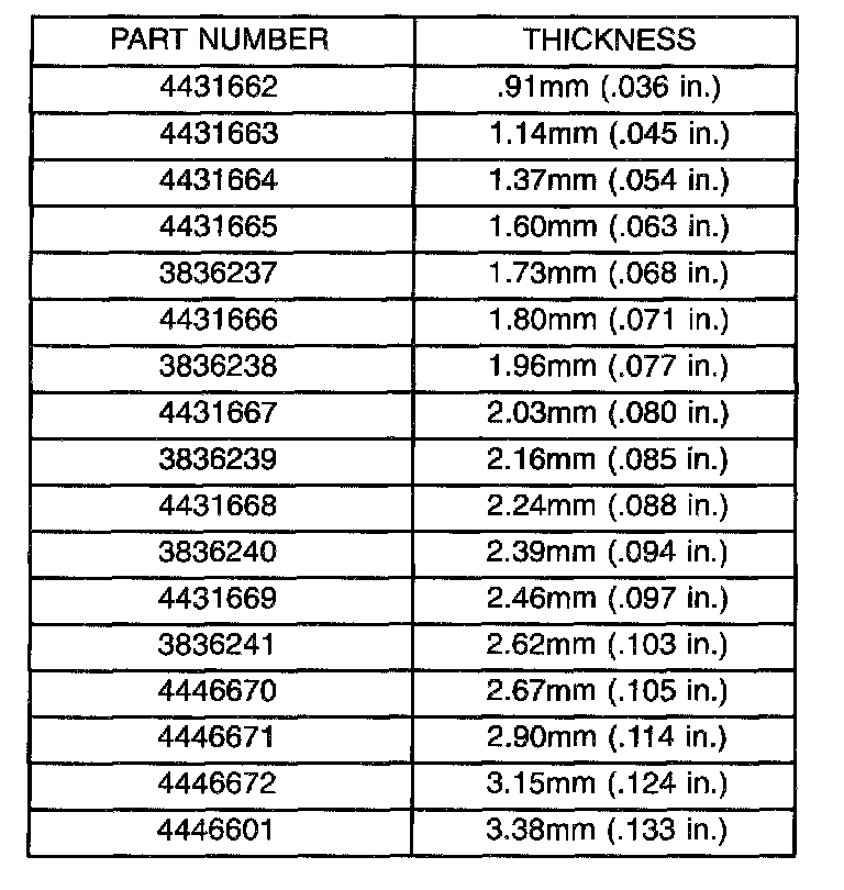 For example, if end play reading is 0.055 inch, select No. 4 Thrust Plate which is 0.071 to 0.074 thick. This should provide an input shaft end play reading of 0.020 inch which is within specifications.