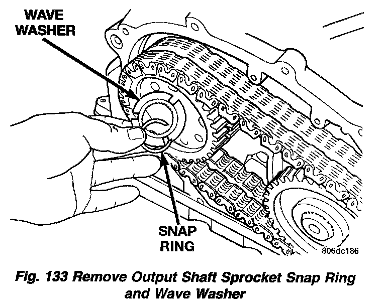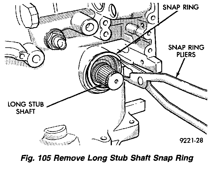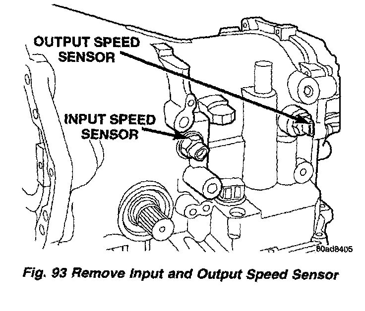 End play specifications are 0.13 to 0.64 mm (0.005 to 0.025 inch), Record indicator reading for reference when reassembling the transaxle. Remove both speed sensors from transaxle case (Fig. 93).