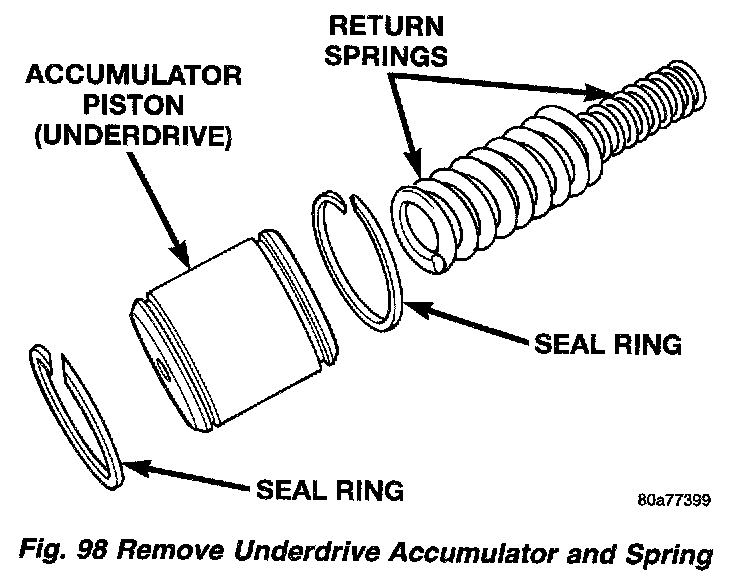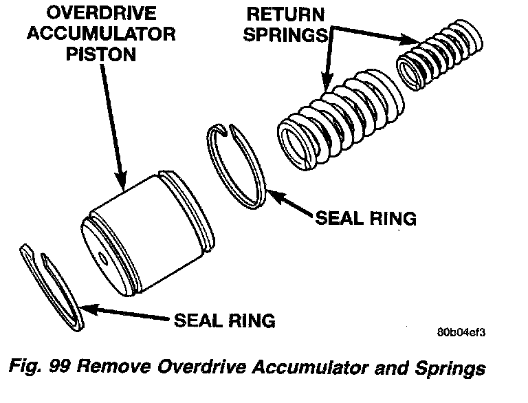 CAUTION: Tag the springs for the Overdrive Accumulator so that they are not confused with the springs in the Low/Reverse Accumulator.