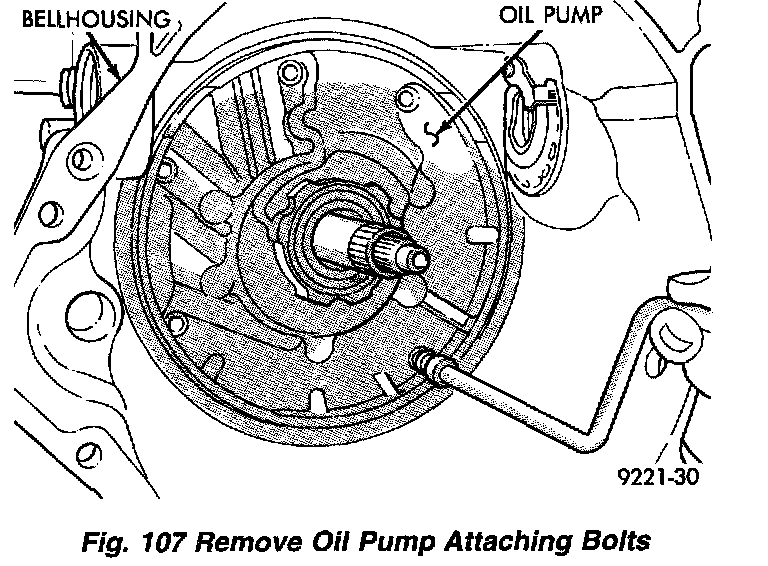 NOTE: To align oil pump during installation, use threaded dowels or phillips screwdrivers.