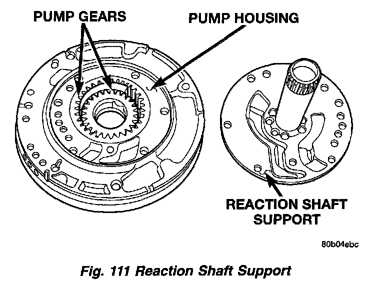 2. Remove reaction shaft support from pump housing (Fig. 111).