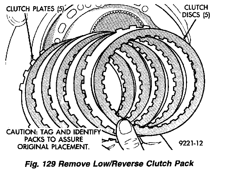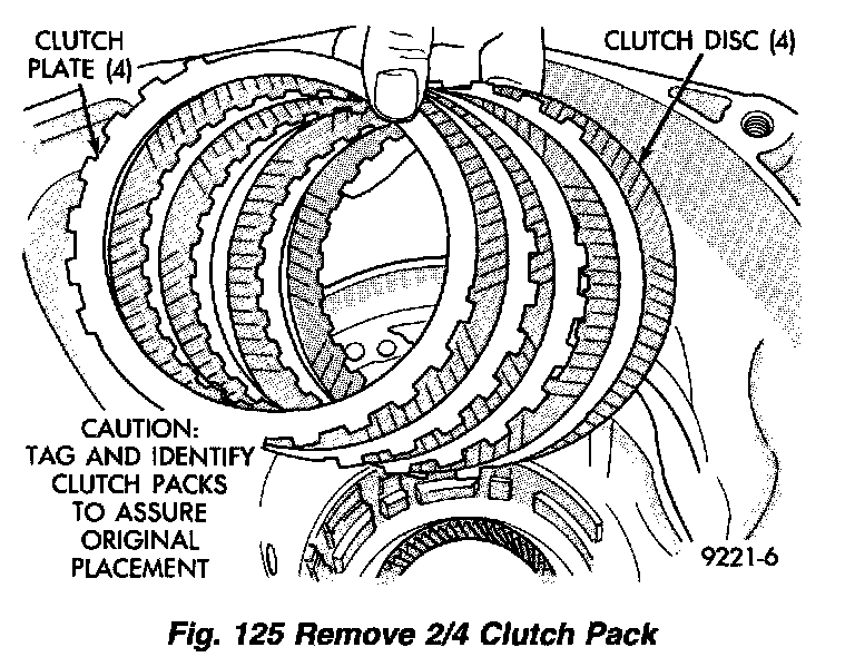 NOTE: Tag all clutch pack assemblies, as they are removed, for reassembly identification.
