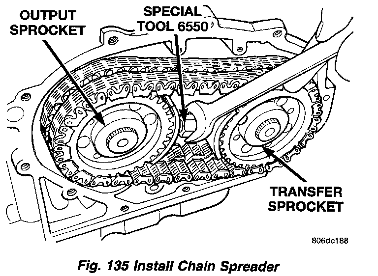 - The chain sprockets have a slip fit onto the shafts. Apply only a slight amount of pressure to the chain spreader to release the chain pressure. If chain sprockets are not spread slightly, removal or installation will be difficult. Overspreading of the chain sprockets will also make sprocket removal difficult.