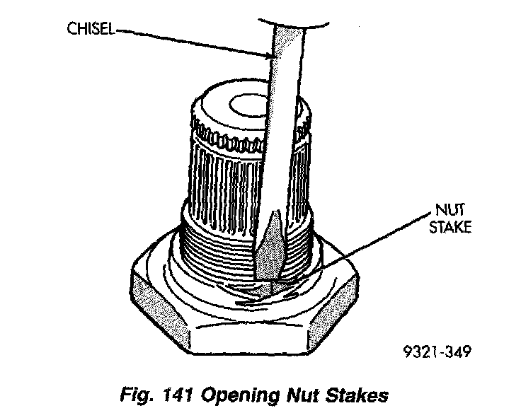 Using a small chisel, carefully open stakes on nut (Fig. 141).