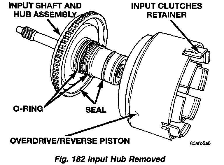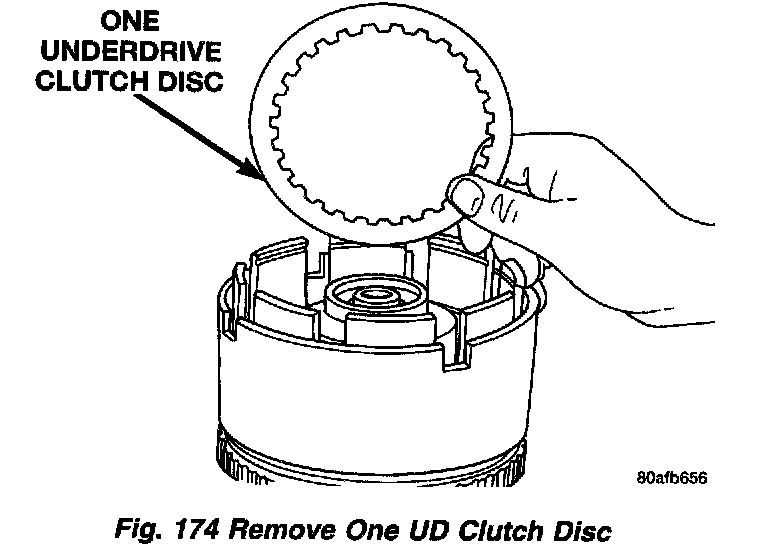 To complete the assembly of the input clutch retainer, the reverse clutch and the overdrive clutch must be removed from the retainer.