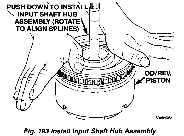 NOTE: Snap ring ends must be located within one finger of the input clutch hub. Be sure that snap ring is fully seated, by pushing with screwdriver, into snap ring groove all the way around.