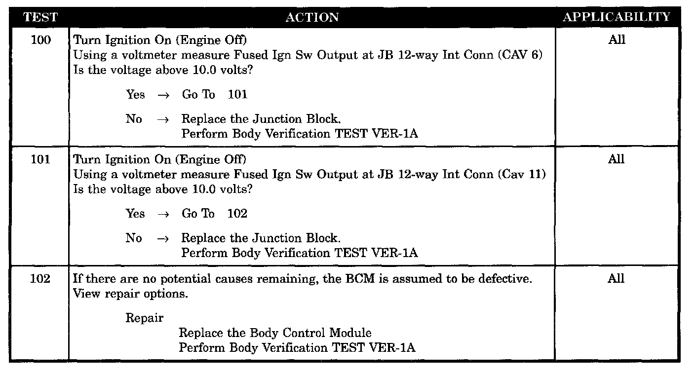 TEST NOTE: All symptoms listed above are diagnosed using the same tests. The title for the tests will be BATTERY POWER TO MODULE DISCONNECT.