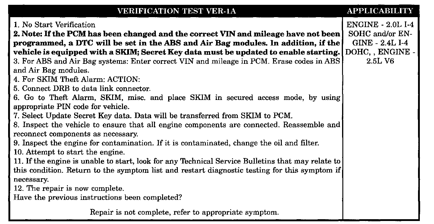 Verification Test VER-1A - No Start Verification Test